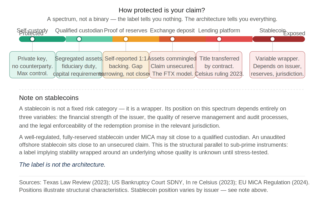 The spectrum below shows that this is not a binary. Protection varies considerably depending on the architecture around the custody relationship.